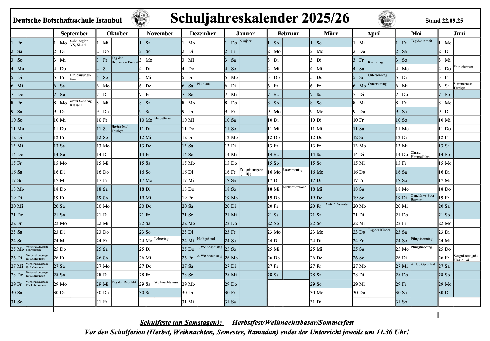 Der aktuelle Ferienplan kann hier als PDF-Datei heruntergeladen werden: Ferienplan Schule 2025-26